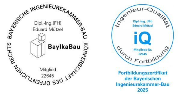 und Einrichtungen nach PrüfVBau und ist Mitglied in der Bayrischen Ingenieurekammer-Bau.